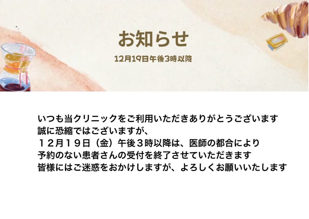 2025年12月17日 / 最終更新日 : 2025年12月17日 出口雅浩 お知らせ 休診のお知らせ Screenshot Follow me! FacebookXBlueskyHatenaLINECopy